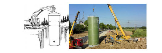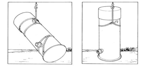 垂直起吊集裝式泵站井筒,垂直起吊的時(shí)候,要把重量均勻分配到 4 個(gè)吊鉤上。起吊時(shí),可使用橫木來(lái)保證吊繩垂直。用起吊套索或吊繩來(lái) 保護(hù)泵站和泵蓋以免夾壞(如圖下圖)